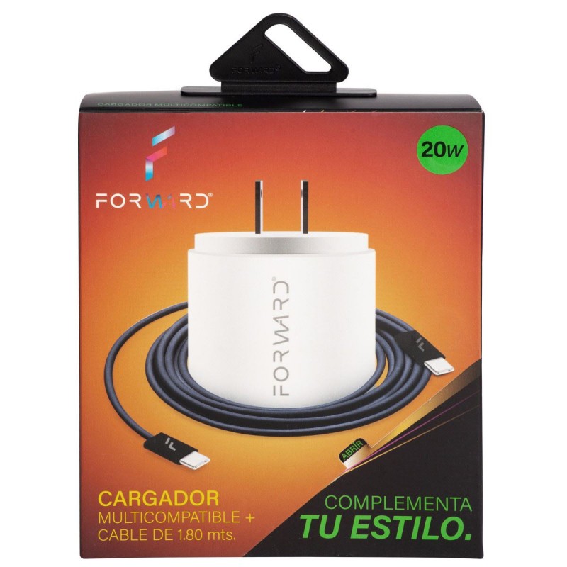 ¡En Sanborns te presentamos el nuevo cargador de 20W con cable tipo C de 1.80 m de la línea 2023 de Forward! Este cargador de carga rápida y eficiente es la solución perfecta para cargar tus dispositivos con entrada tipo C.