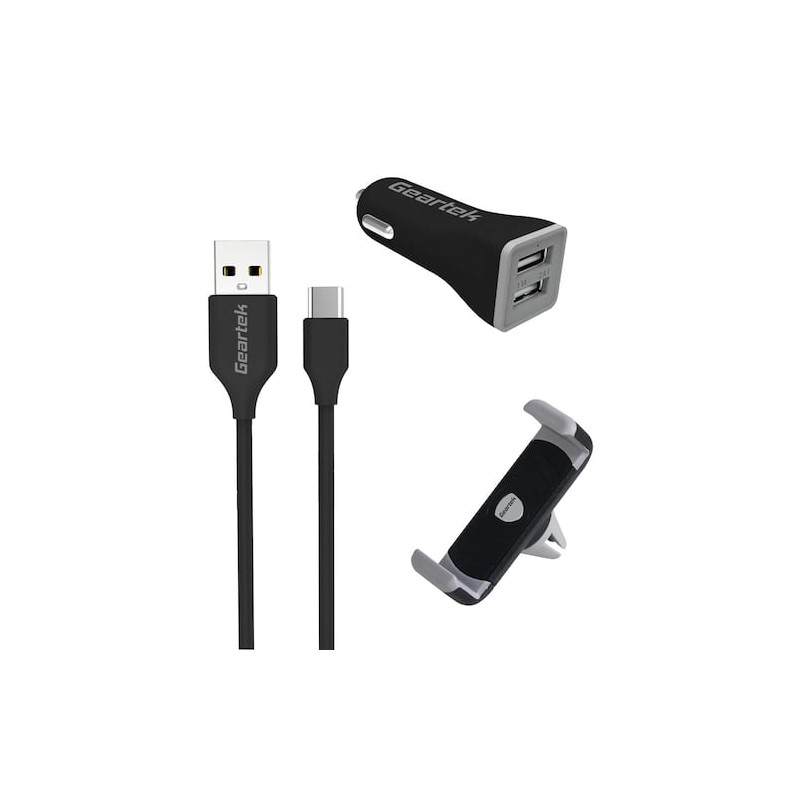 Este cargador con conector USB para coche también incluye un soporte universal para dispositivos móviles.