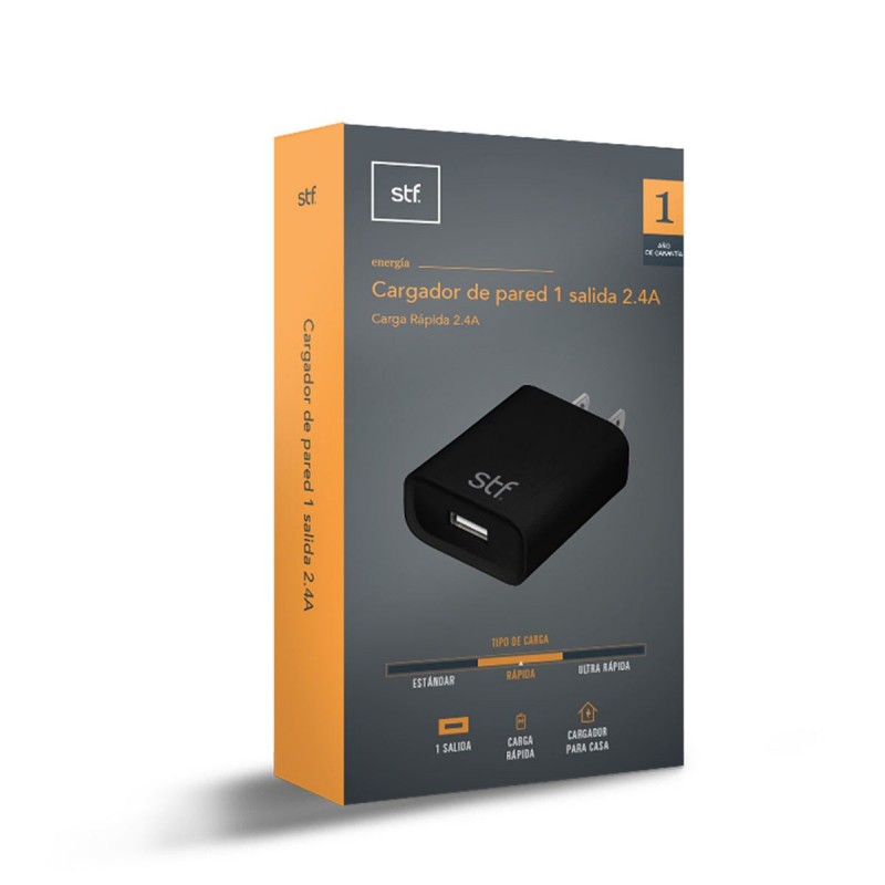 Mejora tus actividades diarias con este cargador de pared STF, un cargador que tiene salida a 2.4A para que conectes tu dispositivo y cargarlo en cualquier lugar. Solo conecta el cable de tus dispositivos y disfruta de la carga rápida que te ofrece este cargador STF.