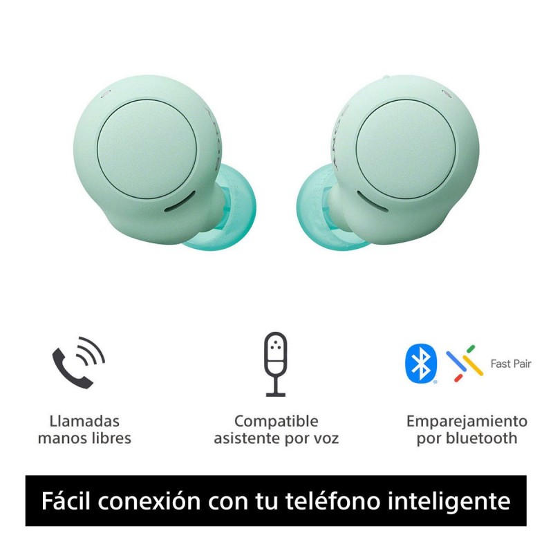 Los compactos audífonos internos True Wireless WF-C500 se adaptan a tu oído. Pero que no te engañe su tamaño. Ofrecen sonido de alta calidad lleno de detalles gracias a la tecnología DSEE, que restaura los fundidos suaves y las altas frecuencias. Estos audífonos Bluetooth® también son compatibles con smartphones, muy fáciles de usar. Cuando una fuente de música original está comprimida, pierde elementos de alta frecuencia que agregan detalle a una canción. Nuestro Digital Sound Enhancement Engine (DSEE) los restaura para producir un sonido de alta calidad cercano a la grabación original. A Restauración B Restauración precisa del sonido Los botones de los audífonos WF-C500 no solo te permiten reproducir, detener o saltar canciones y ajustar el volumen, sino también acceder al asistente de voz de tu smartphone y responder llamadas con manos libres de forma sencilla. Gracias a su clasificación de resistencia al agua IPX4, ni las salpicaduras ni el sudor detendrán a estos audífonos, por lo que podrás seguir al ritmo de la música. Disfruta de hasta 20 horas de audio gracias al práctico estuche de carga. Y si tienes prisa, 10 minutos de carga rápida te dan hasta 1 h de tiempo de reproducción adicional. Sumérgete en tu sonido. Disfruta del sonido como en conciertos o con el artista en el estudio. Con 360 Reality Audio, la música nunca había sido tan envolvente ni realista. Disfruta con los audífonos de 360 Reality Audio.Requiere la aplicación Sony