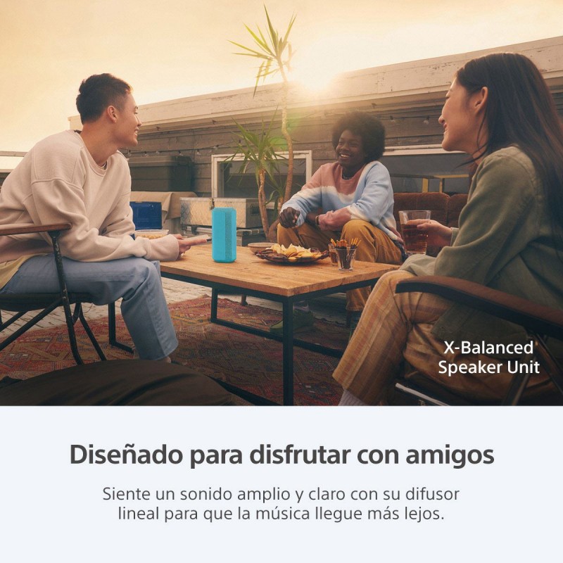La bocina XE300 es perfecta para animar la fiesta con un sonido de calidad. El difusor con forma de línea propaga un sonido amplio por todas partes, sin sacrificar la calidad. Además, con una batería de larga duración, un tamaño portátil y una durabilidad impresionante, esta bocina es la compañía perfecta para tu próxima fiesta, sea donde sea. La XE300 cuenta con un difusor con forma de línea que ayuda a que el sonido llegue más lejos que nunca. Además, con su tamaño portátil y su duración de batería de 24 horas, es el compañero perfecto para tu siguiente fiesta. Inspirado en los sistemas de audio de los conciertos, el difusor con forma de línea de Sony crea una fuente de línea y distribuye el sonido más uniformemente, a través de un amplio frente sonoro, para llegar mejor a toda la sala. Así, el sonido se propaga más lejos y con mayor amplitud por la sala sin sacrificar calidad de sonido. Con el difusor con forma de línea, el sonido se propaga más por la zona frontal de la bocina. Así puedes disfrutar de la misma calidad de sonido, tanto delante como a los lados de la bocina. De esta forma, toda la sala podrá bailar al son de la misma música con la misma calidad de sonido. AAlcance convencional BAlcance más amplio con el difusor con forma de línea. Las bocinas convencionales concentran más energía en el centro del cono. Nuestro difusor con forma de línea reenvía el sonido a través de una apertura estrecha. Una mayor presión acústica propaga el audio por igual en todas direcciones, más lejos y con mayor amplitud. A diferencia del diafragma circular de las unidades de bocina convencionales, la nueva X-Balanced Speaker Unit de la XE300 cuenta con un diafragma no circular que libera más presión acústica para obtener un sonido de alta calidad. Su forma no circular maximiza el área del diafragma para aumentar la presión acústica y ofrecer graves impactantes, además de reducir la excursión del controlador y mantener la misma presión acústica, lo que genera menos distorsión. Además, su diseño descentrado y su equilibrio en el peso optimizado ayudan a mejorar la claridad y ampliar el sonido de escenario. Los radiadores pasivos duales reproducen graves potentes. La XE300 es resistente al agua, incluso al agua salada, por lo que no te tendrás que preocupar cuando estés junto al mar o en la piscina, y no tendrás problemas para lavarla. La XE300 se ha sometido a exhaustivas pruebas de impacto para garantizar que soporta los impactos, golpes y arañazos inevitables del uso diario. La XE300 seguirá funcionando incluso si se te cae. Gracias a su índice de protección IP673, la bocina está aislada contra el polvo, por lo que puedes usarla en cualquier superficie, ya sea en la playa, en el parque o en el jardín. La XE300 te dará 24 horas de reproducción con la batería cargada, por lo que una carga basta para animar cualquier fiesta. La tecnología de detección de micrófonos Ambient Noise Sensing (detección de ruido ambiental) de Sony ahorra batería en exteriores. La función Battery Care te ayuda a evitar sobrecargas y mantiene la batería en condiciones óptimas durante más tiempo. Se puede activar esta función en la aplicación Sony Music Center. Si tienes poco tiempo, no te preocupes. La carga rápida te proporciona 70 minutos de reproducción con solo 10 minutos de carga. Utiliza un cable USB Type-C para cargar la XE300. Party Connect permite combinar hasta 100 bocinas inalámbricas por Bluetooth y sincronizar la música. Y con Stereo Pair, conecta dos bocinas de manera inalámbrica para un sonido estéreo épico. Ambas funciones están activadas en la aplicación Sony Music Center. Con Google, la bocina de Sony XE300 se empareja por Bluetooth sin esfuerzo con tus dispositivos Android. Controla funciones divertidas, como Control por gestos y Control de DJ. Nuestros productos no solo son elegantes, también protegen el medioambiente. Se usa plástico reciclado específicamente diseñado para Sony en las piezas internas de la XE300. Además, el embalaje individual de la XE300 contiene un 5 % o menos de materiales plásticos. Esto refleja el compromiso de Sony por reducir el impacto de nuestros productos y prácticas.