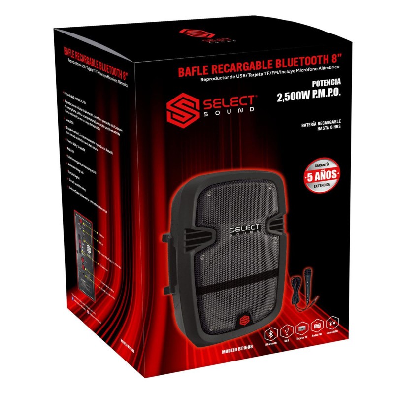 Escucha tu música favorita con esta bocina Select Sound con Tecnología TWS, conecta dos bocinas a la vez y crea un sonido surround con su potencia de 2,500W P.M.P.O.