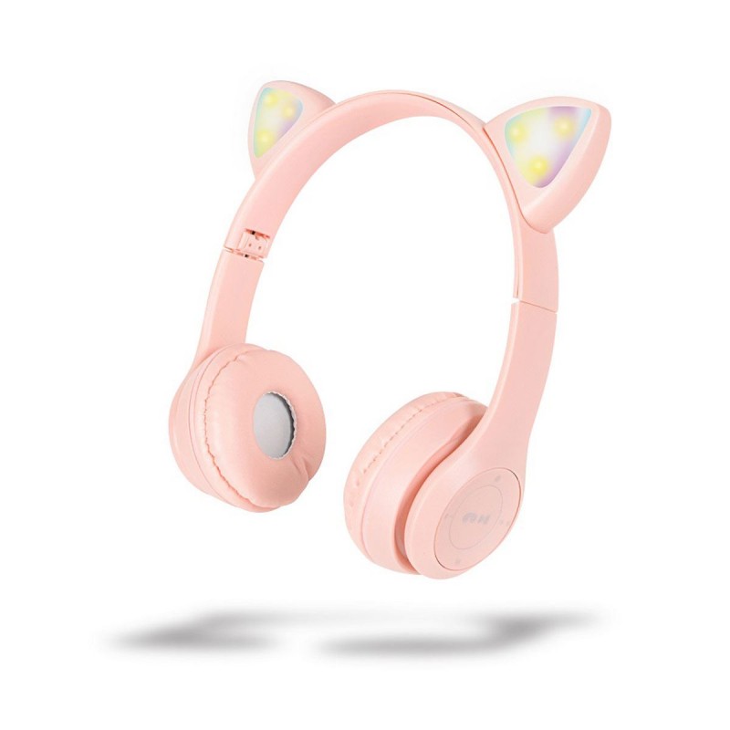 Audífonos Inalámbricos BLUETOOTH con Manos Libres. Innovador diseño de Orejas de Gato con Luz LED que prenden. Radio FM y reproductor de Tarjeta Micro SD. Micrófono integrado para contestar llamadas. Entrada auxiliar (cable incluido) para escuchar tus audífonos como alámbricos. Controla las funciones de Play, Volumen & Skip