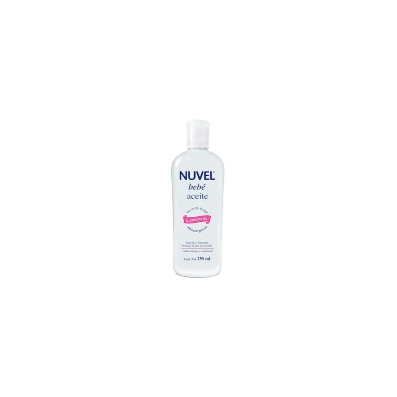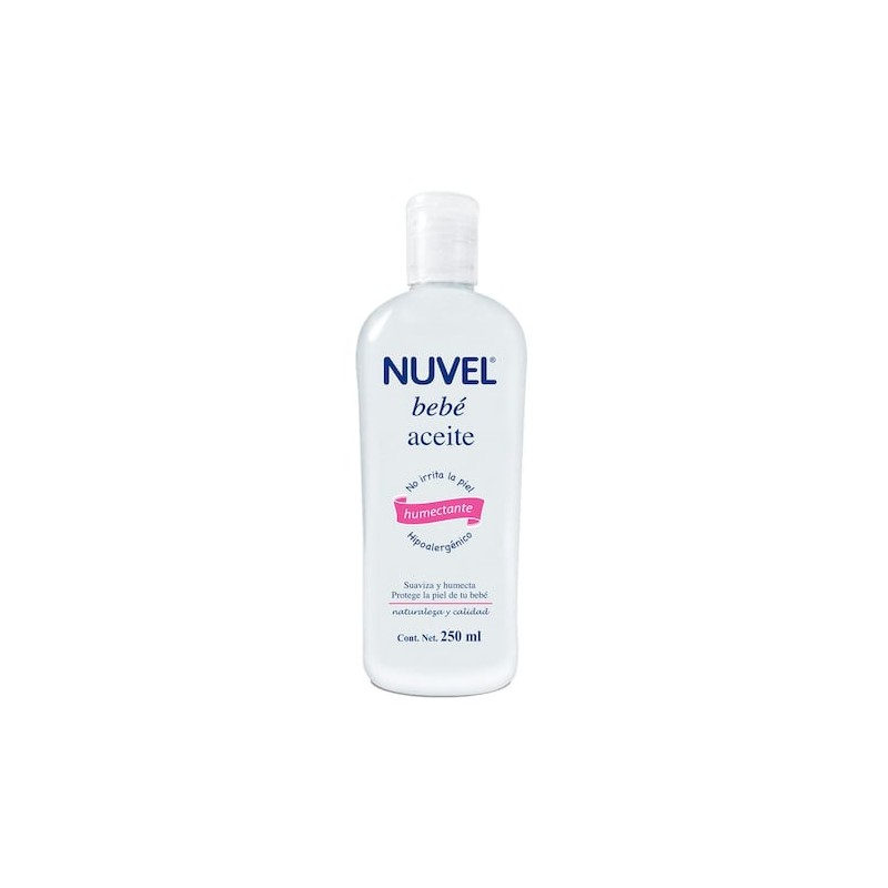 El Aceite de bebé Nuvel está formulado con aceite mineral que ayuda a mantener la humedad natural de la piel.