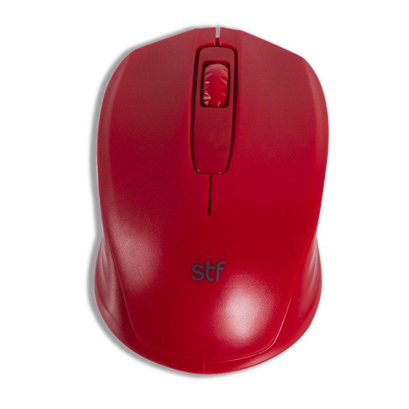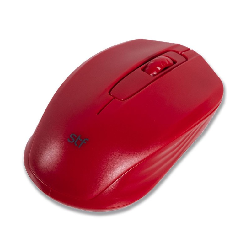 El mouse inalámbrico de sensor óptico STF tiene dos botones y función de scroll, es perfecto para completar tu kit de escritorio. Disponible en color rojo y negro. Su función ambidiestra te permite usar este cómodo ratón con cualquier mano. No incluye pila requerida (AAA).