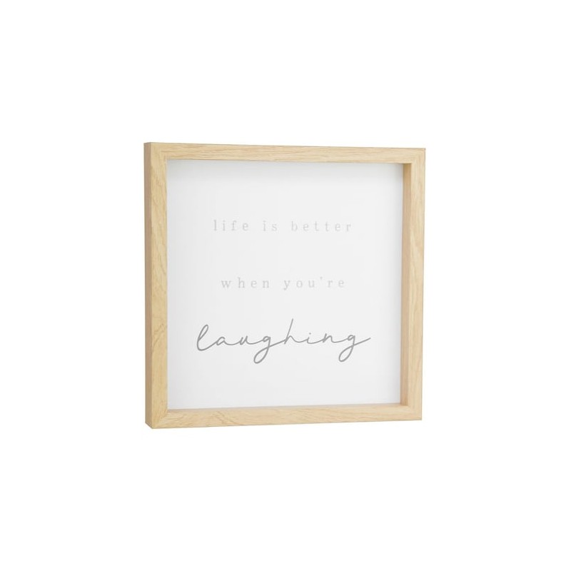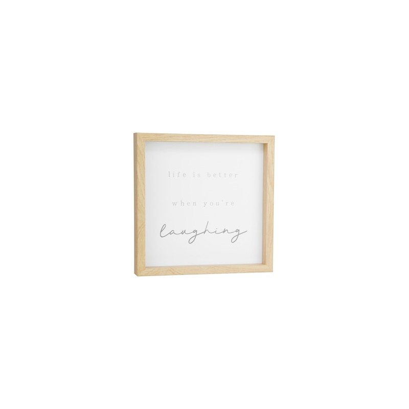 Dale a tu espacio un toque de elegancia con este Cuadro decorativo Sanborns, elaborado en MDF (panel de alta densidad) color cafe claro, medida de 9X 9 y frase life is better when youre laughing , Gracias a que su material es completamente liviano, es ideal para ponerlo en cualquier espacio en la pared. No lo dudes más y adquiere este lindo detalle. Solo Sanborns.