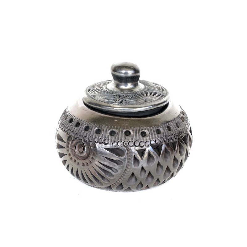 Producto elaborado a mano en su totalidad con arcilla de la región de Oaxaca. Fue hecho en un margen de 30 días por aproximadamente 4 artesanos que intervienen en el proceso. Técnica única de bruñido a base de una piedra de cuarzo para el brillo de las piezas.