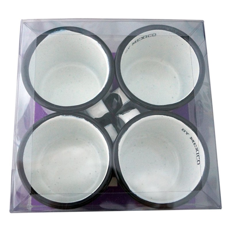 Set de 4 mini pocillos de peltre vitrificados con capacidad de 80ml cada uno. Los pocillos By México están vitrificados para brindarte una mayor duración, no sólo en relación a su uso, sino también a su estética para que siempre luzcan como nuevos. Este set de 4 mini pocillos viene en una caja de acetato para que se convierta en el regalo perfecto. Consigue tus pocillos By México aquí.