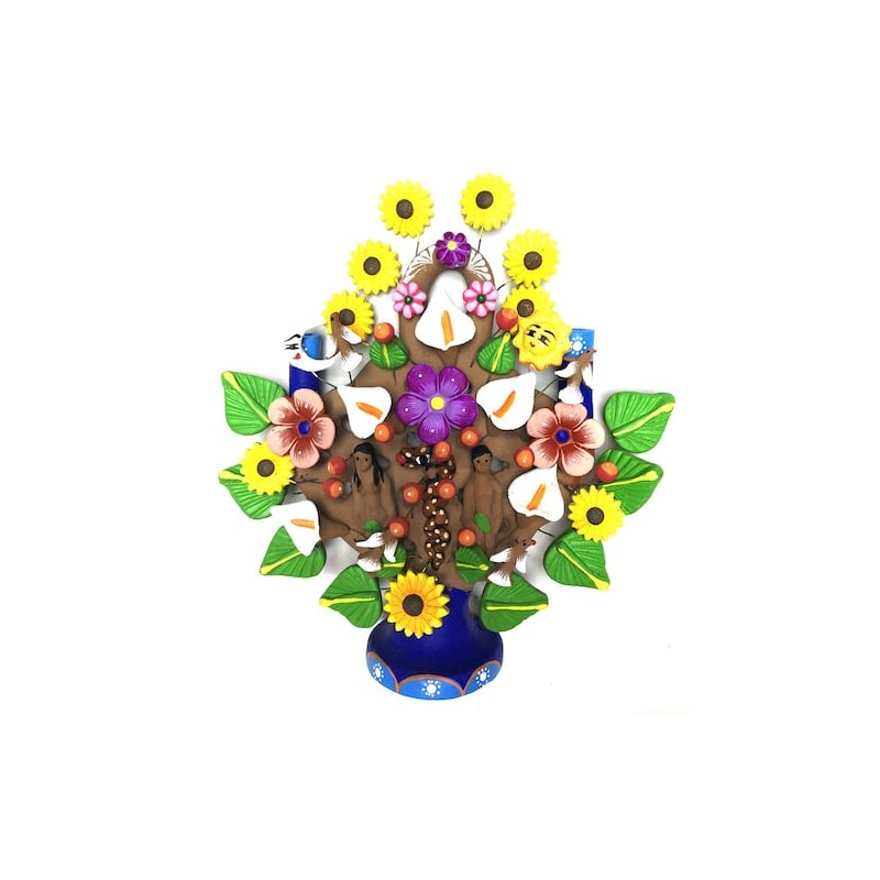 Árbol de la vida hecho en barro. Originalmente enseñaba la historia de la creación pero actualmente revive distintos pasajes. Los árboles sagrados conectan todas las formas de creación en el mundo. Decorar espacios con árboles de la vida no sólo exalta las tradiciones, sino las vibras positivas en los diferentes espacios. 100% artesanal hecho a mano por maestros artesanos de México. (Los tamaños, formas y colores pueden variar ya que son piezas únicas. Gracias a tu compra se apoya a las familias de artesanos mexicanos).