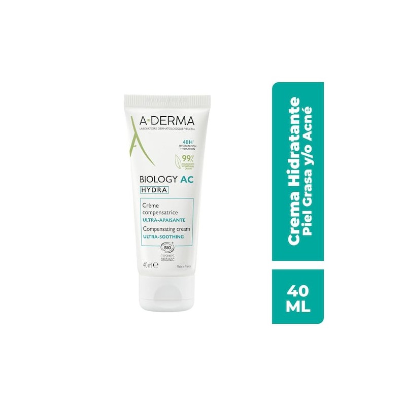 BIOLOGY AC HYDRA 40 ML ayuda a calmar la piel al instante desde su aplicación y la hidrata durante 48 horas. Limita la descamación excesiva y la sensación de tirantez. Con el uso regular de la crema hidratante, la piel queda calmada, hidratada, reconfortada y suave. Formulada con ácido glicirretínico y extracto de plántulas de Avena Rhealba®, un ingrediente calmante enriquecido con ingredientes hidrocompensadores, está delicadamente perfumada y no deja sensación grasa ni pegajosa. Una excelente base para la aplicación del maquillaje. No comedogénico.
