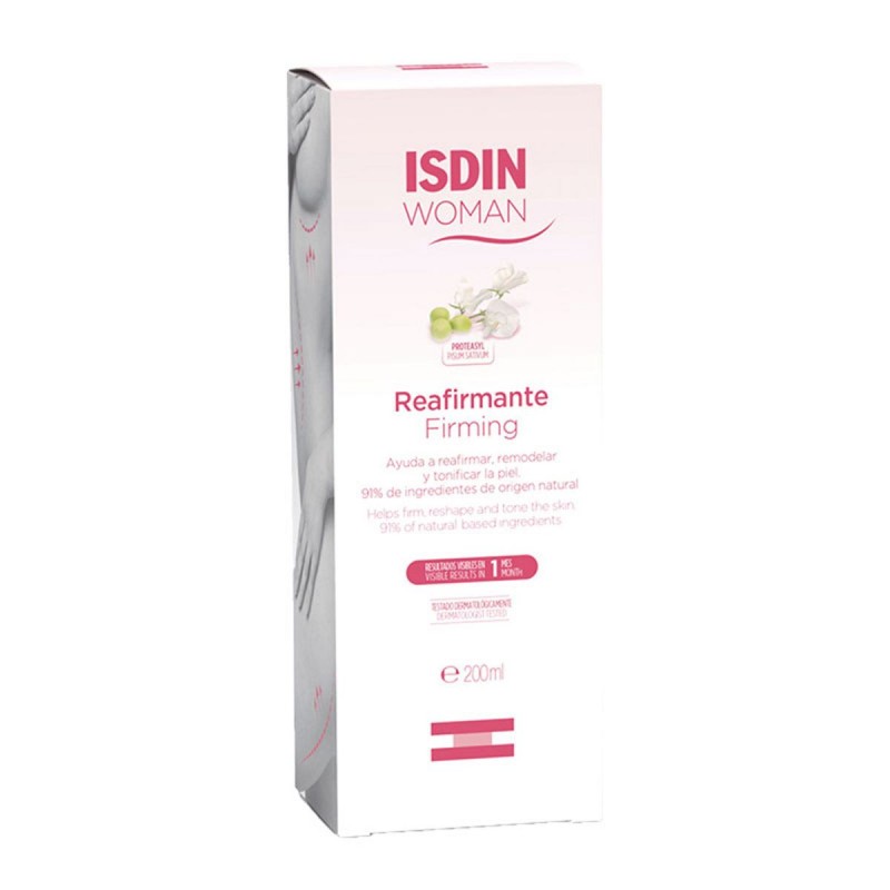 Isdin Woman Crema Reafirmante 200 Ml. Reafirma, remodela y tonifica tu piel tras el embarazo o pérdidas de masa corporal Reafirma, remodela y tonifica la piel. Trata la flacidez cutánea asociada al postparto, adelgazamiento y adolescencia mejorando la firmeza y apariencia de la piel. Estimula la regeneración de los tejidos de colágeno y elastina flexibilizando y favoreciendo la elasticidad de la piel. Hidrata intensamente y tiene un efecto antioxidante. Ayuda a atenuar las estrías recientes. Con ingredientes naturales.