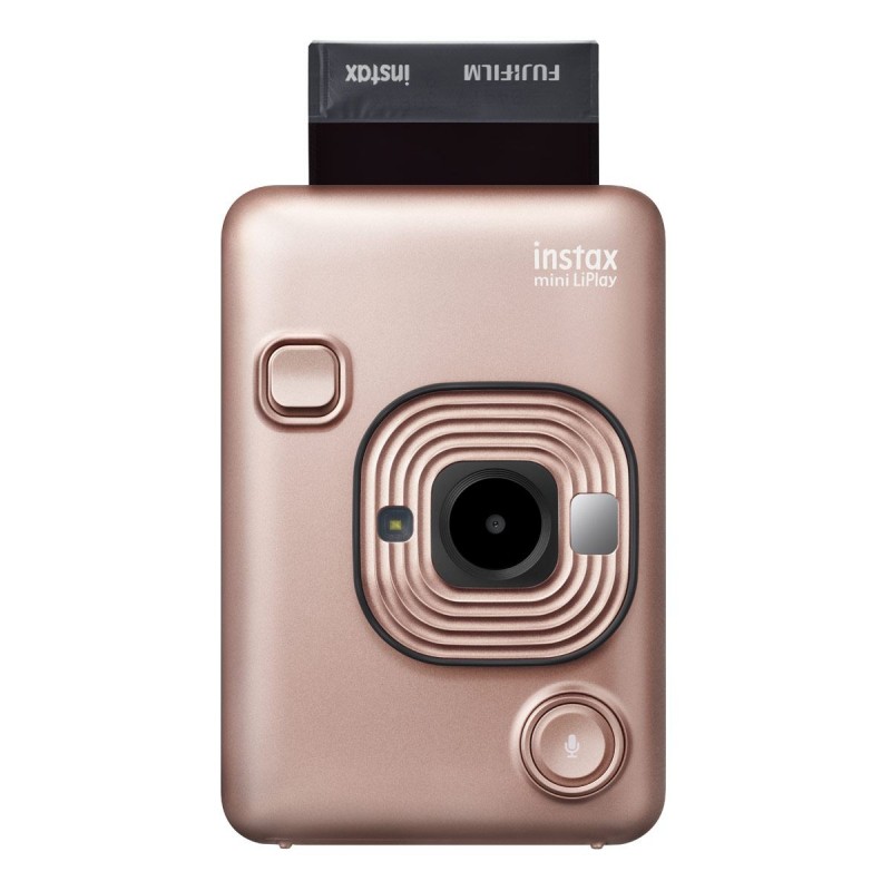 Cámara Fujifilm Instax Mini LiPlay Rosa, Correa muñequera,cable USB para carga, manual de usuario.Cámara más pequeña de la familia Instax.Selección de fotos desde biblioteca.Memoria interna y externa.Almacenamiento de imágenes con sonido de grabado.Impresión instantánea, las fotos se revelan en apenas 90 segundos.Flash automático.Compatible con Instax Mini LiPlay App.Utiliza Película Fujifilm Instant Color instax mini (se vende por separado), 86mm x 54mm.
