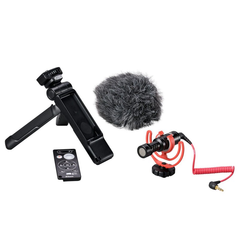 El Kit de accesorios para creadores incluye un trío de herramientas esenciales para creadores de contenido, mejora tu calidad de audio con el microfono Rode Video Micro, mientras que el tripie de mesa Smallrig también sirve como soporte para el control de Nikon ML- L7, opera tu cámara aun estando frente a ella.