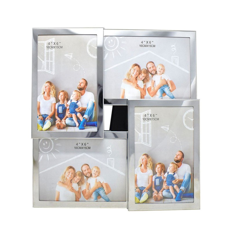 Deja que tus mejores imágenes vivan como un grato recuerdo en este portarretrato Multiple Sanborns de 4x6 pulgadas para 4 fotografías, elaborado en Metal con acabado Plateado. Gracias a que su material es completamente liviano, es ideal para ponerlo en cualquier superficie o repisa.