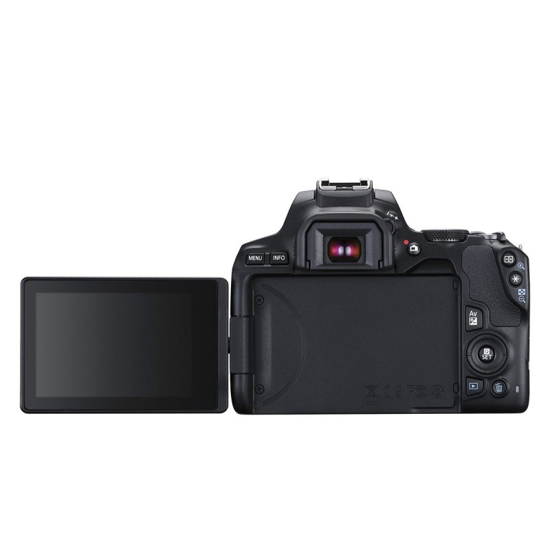 La cámara EOS Rebel SL3 es una cámara pequeña y liviana equipada con la capacidad de grabación en 4K, el AF del CMOS de píxeles duales y una pantalla LCD con ángulo variable para tomar autorretratos y fotografías en ángulos divertidos. Su sensor CMOS (APS-C) de 24.1 megapíxeles trabaja en conjunto con el potente procesador DIGIC 8 para lograr un rendimiento y resultados extraordinarios. La EOS Rebel SL3 incluso permite explotar su creatividad con opciones tales como los videos en 4K con intervalo de tiempo y el asistente de filtros creativos. Dondequiera que se encuentre y dondequiera que vaya, la cámara EOS Rebel SL3 simplifica la captura de videos y fotografías sorprendentes tanto para ver como para compartir. Definido por su factor de forma notablemente elegante, el Canon EOS Rebel SL3 negros una cámara réflex digital versátil que ofrece una combinación ideal de imágenes fijas y capacidades de video. Con un sensor CMOS de formato APS-C de 24.1MP y un procesador de imagen DIGIC 8, se pueden tomar fotos de alta resolución y grabación de video UHD 4K, junto con un amplio rango de sensibilidad ISO 100-25600 para adaptarse a trabajar en una variedad de condiciones de iluminación. La creación de películas time-lapse en cámara 4K también es posible para representar creativamente sujetos a lo largo del tiempo. Al beneficiarse de los atributos de la imagen, el diseño del sensor también facilita el CMOS AF de doble píxel, que utiliza el enfoque automático de detección de fase para lograr un enfoque rápido, preciso y suave al grabar películas o tomar fotografías en vista en vivo. Al tomar fotografías usando el visor óptico, se utiliza un sistema de detección de fase de 9 puntos para un enfoque rápido y preciso en una variedad de escenarios de disparo. Dentro del diseño de cuerpo compacto, se presenta una gran pantalla LCD táctil de 3.0 de 1.04 m para el control de configuración intuitivo y el monitoreo de visualización en vivo, y utiliza un diseño de ángulo variable para permitir una mejor visualización desde ángulos de trabajo altos y bajos. En Wi-Fi está disponible para un emparejamiento rápido y conveniente con un teléfono inteligente o tableta para compartir imágenes de forma inalámbrica, y Bluetooth también se ofrece para compartir imágenes y controlar la cámara de forma remota desde un dispositivo móvil. Sensor CMOS APS-C de 24.1MP y procesador de imagen DIGIC 8. Tanto el sensor APS-C CMOS de 24.1MP como el procesador de imagen DIGIC 8 se usan para brindar una alta sensibilidad y un rápido rendimiento de la cámara para adaptarse a las imágenes fijas y aplicaciones de video. Una gama nativa ISO 100-25600 flexible se adapta al trabajo en una variedad de condiciones de iluminación, y las capacidades de procesamiento minimizan el ruido para una claridad notable. El procesador también permite la grabación continua de hasta 5 fps, así como la grabación de video UHD 4K y el modo de película de lapso de tiempo de 4K. Grabación de video UHD 4K. Además de la grabación de imágenes fijas, el SL3 también admite la grabación de video UHD 4K24p, así como la grabación Full HD y HD. La grabación de video se beneficia de la inclusión de las funciones de enfoque Dual Pixel CMOS AF y Movie Servo AF, así como del diseño de la pantalla táctil del monitor LCD para un control intuitivo. Movie Digital IS también ayuda a estabilizar las grabaciones al minimizar la aparición de sacudidas de la cámara en cinco ejes para obtener imágenes más suaves. Además, se incorpora un conector para micrófono externo en el diseño del cuerpo para un mayor control sobre el sonido grabado. Al emplear las capacidades de video, también se puede usar un modo dedicado de Time-Lapse Movie para representar creativamente a los sujetos durante un período de tiempo más largo. Los ajustes de intervalo entre 1 segundo y 60 minutos están disponibles para entre 2 y 3600 cuadros consecutivos. Estos cuadros individuales pueden luego compilarse automáticamente en un archivo de video 4K o Full HD para una reproducción perfecta. Detección de fase de 9 puntos AF y CMOS AF de doble píxel. Al beneficiarse de la toma de fotografías con el visor óptico, un sistema de autoenfoque de detección de fase de 9 puntos proporciona un enfoque rápido y preciso en condiciones de iluminación difíciles. El punto central también es un tipo de cruz para mejorar la precisión y la velocidad. Cuando se graba un video o se graba en la vista en vivo, se emplea un sistema de AF de doble píxel CMOS que ofrece un rendimiento de enfoque suave y rápido de una manera similar a como la videocámara adquiere el enfoque. Este sistema integra dos fotodiodos separados dentro de cada píxel para proporcionar una amplia y densa red de elementos de recolección de detección de fase en la mayoría del sensor de imagen para reducir la búsqueda de foco para un control más rápido y más directo de la colocación del foco. Cuando se trabaja con imágenes fijas, este sistema de enfoque trabaja para adquirir el enfoque d
