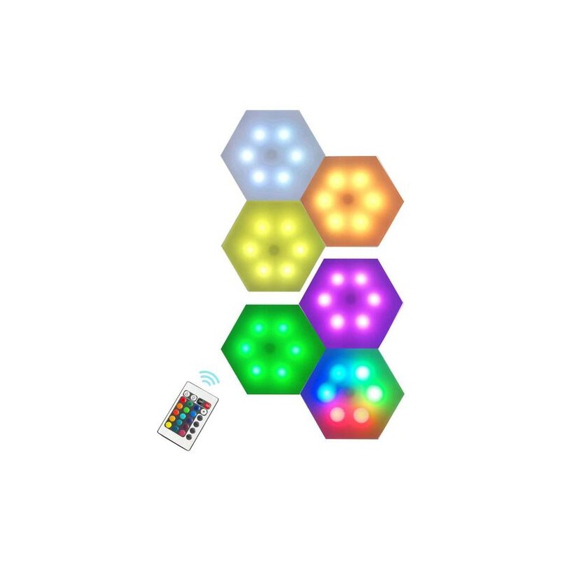 Luces de pared con control táctil y control remoto inspirado en bloques de construcción, rompecabezas y panal, las luces de componente modular hexagonal son divertidas. Los paneles de luz LED de baja potencia utilizan un sensor de proximidad capacitivo para detectar tu cuerpo y encender o apagar con poco esfuerzo. Convierte fácilmente tu pared en una obra de arte. Establece modos y colores de acuerdo a tu estado de ánimo. Especialmente diseñado para juegos mejorados, cine en casa, decoración del hogar. Añade un toque sorprendente a tus habitaciones