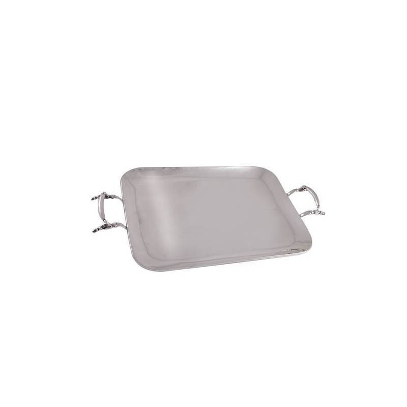 Fina Pieza Única Artesanal Charola Flor de liz Elaborada En Plata Ley .925 Terminado Liso con Asa de Fundición