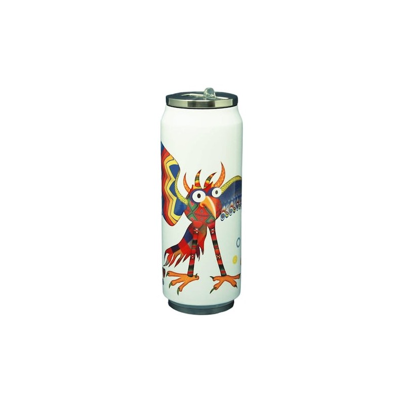 Termo tipo lata de doble pared de acero con popote, no suda, ni se calienta la lata por fuera, por lo que la puedes transportar con facilidad, mantiene las bebidas frías o calientes por tiempo prolongado, ideal para café, té, etc. sella perfectamente y la puedes traer en el coche y no chorrea. La tapa tiene una boquilla que se sube y baja y se complementa con un popote.