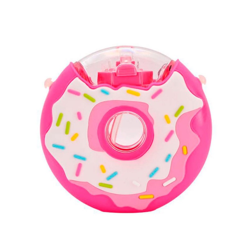 Termo con diseño de dona, capacidad de 400ml, practico, resistente y portátil, ideal para tomar agua sin perder el estilo y lucir siempre cute, por efectos de iluminación de fotografía, el tono de color puede variar con respecto al color real.