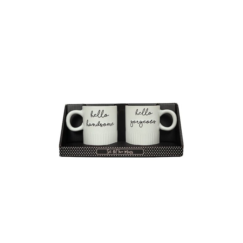 Tazas pareja de cerámica, 2 piezas con leyenda HELLO GORGEOUSHANDSOME, perfecta para tomar la bebida de tu preferencia en compañía de tu persona favorita, se puede meter al microondas, ideal para esos días y tardes de café, por efectos de iluminación de fotografía, el tono de color puede variar con respecto al color real.