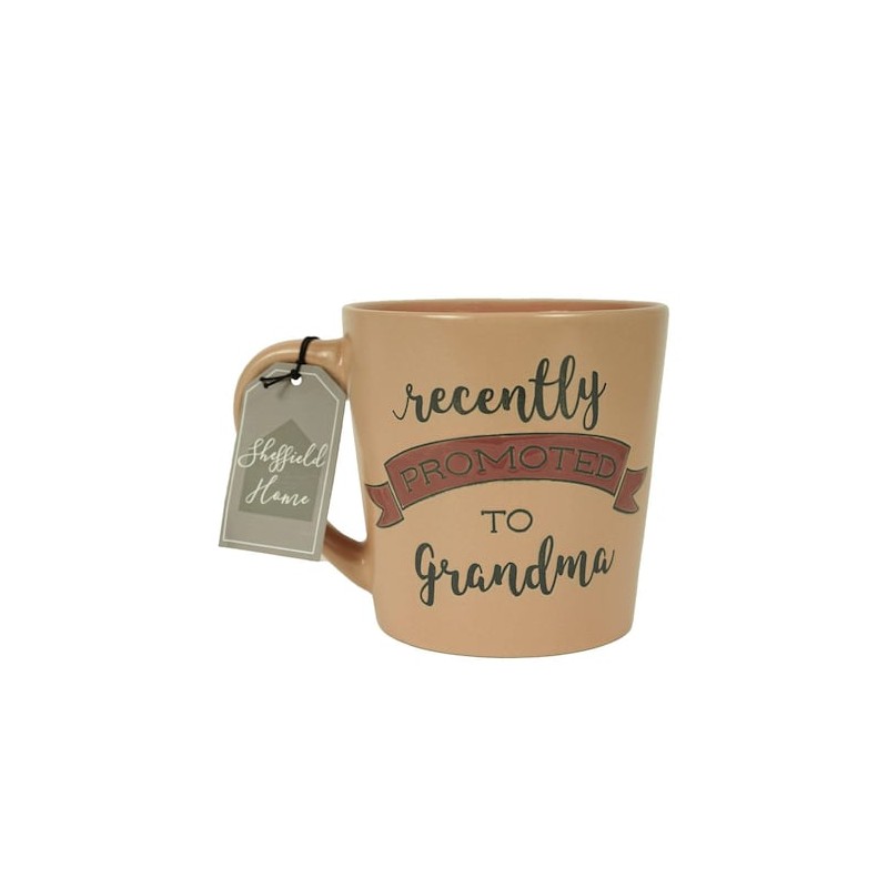 Taza de cerámica con frase VECENTLY PROMOTED TO GRANDMA, color rosa, perfecta para tomar la bebida de tu preferencia, se puede meter al microondas, ideal para esos días y tardes de café, por efectos de iluminación de fotografía, el tono de color puede variar con respecto al color real.