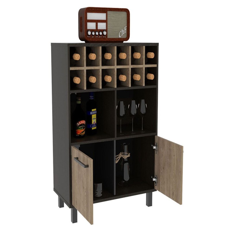 Este Mueble Bar Excelsior, modelo Kaia cuenta con 2 puertas, 2 entrepaños, 12 espacios para botellas de cualquier estilo.