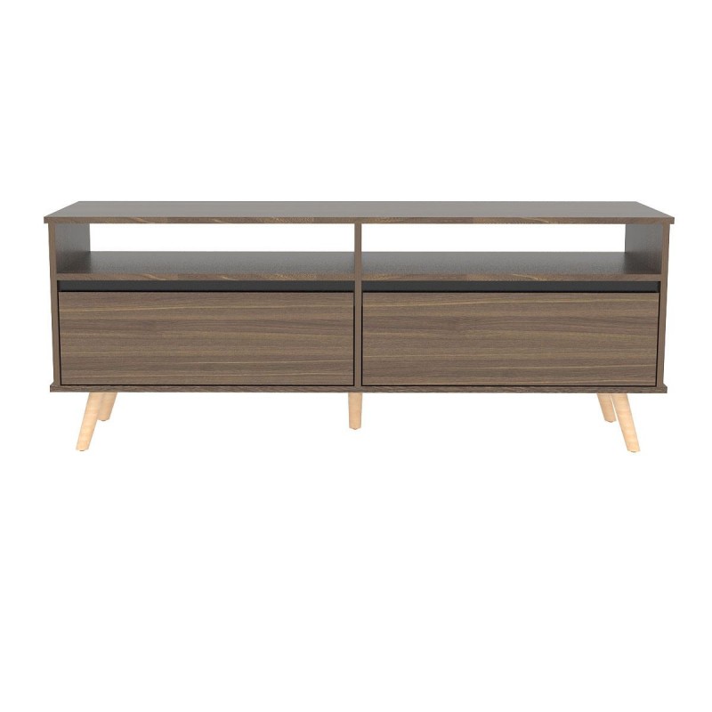 Con este rack de televisión mejorarás cualquier espacio, ya que tiene dos amplios compartimentos en los que podrás almacenar y organizar libros, componentes, consolas o decorar con las fotografías de tu familia. Soporta pantallas de hasta 55.