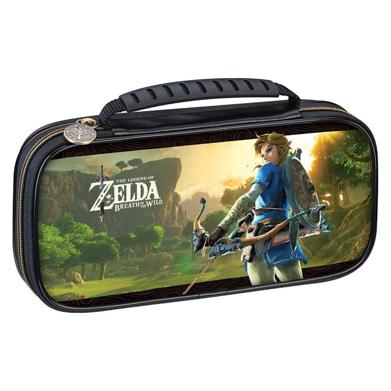 Estuche rígido duradero con asa de agarre cómodo y cremallera deslizante fácil personalizada. Diseñado específicamente para proteger los sticks analógicos Joy-Con, el panel acolchado de protección de la pantalla ya sea de la Switch estándar, Lite u OLED, el bolsillo con cremallera de acceso rápido para accesorios y cuenta con un compartimento empotrado para estuches para juegos. Con un diseño de Zelda