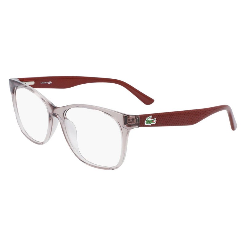 El Cocodrilo se hace presente. Lacoste presenta esta armazón inspirada en sus principales categorías, con diseños y combinaciones sofisticadas para aquellos que buscan combinarlo con su alto nivel y estilo de vida, armazón muy cómoda, con diversos atributos que establecen un vinculo cercano con su usuario, armazón de inyectado de alta calidad y durabilidad, una armazón para mujer, que en conjunto con la forma rectangular resaltará sus facciones pronunciando la personalidad del usuario.