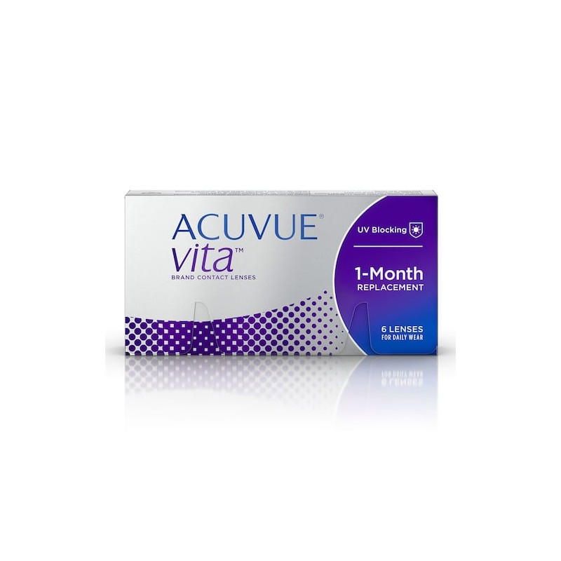 Los Lentes de Contacto Acuvue Vita vienen con la nueva tecnología HydraMaxTM. Su lente es de hidrogel de silicona sin recubrimiento de superficie cuya fórmula se ha calculado para ayudar a maximizar y mantener la hidratación1,2. Están diseñados para pacientes que desean el reemplazo y la accesibilidad de su lentes mensuales, pero quieren evitar la pérdida de comodidad a lo largo del mes, que puede ser causada por un cambio en la hidratación del lente. Su tecnología HydraMAX brinda comodidad durante todo el mes.