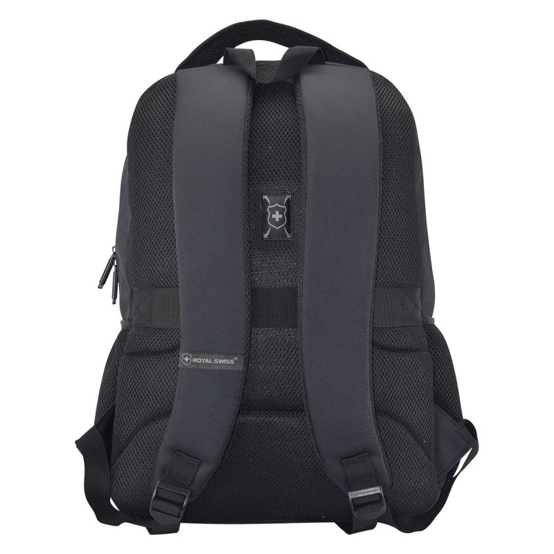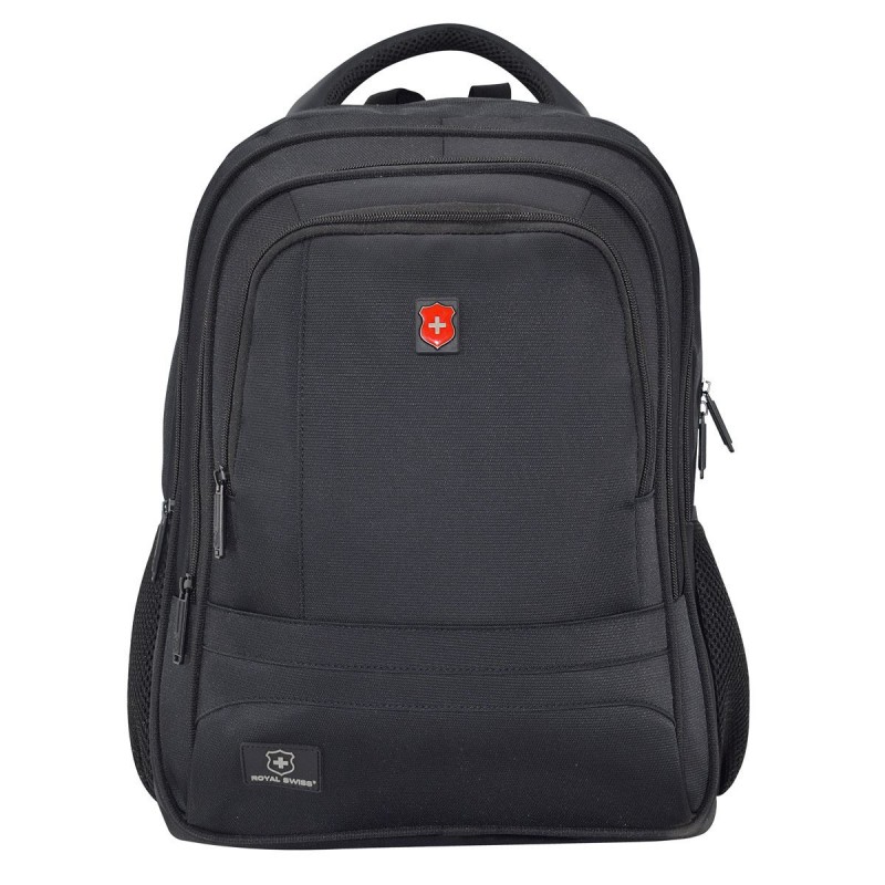 MOCHILA ROYAL SWISS. MATERIAL DE NYLON CON ALTA RESISTENCIA. Compartimento principal de amplio espacio, en su interior cuenta con un organizador espacial para laptop de hasta 17. Segundo compartimento con organizador interno para tus objetos personales. 3 compartimento. 1 bolsillo frontal. Bolsillos a los costados de red con cinta elastica. Manija superior ergonomica con tela transpirable en la parte posterior para mayor comodidad. Espalda ergonomica con relleno en la parte interior y tela transpirable para mayor confort, adicional cuenta con una cinta para que puedas transportar tu mochila en el trolley de un equipaje. Tiros ajustable con tela transpirable en la parte posterior.