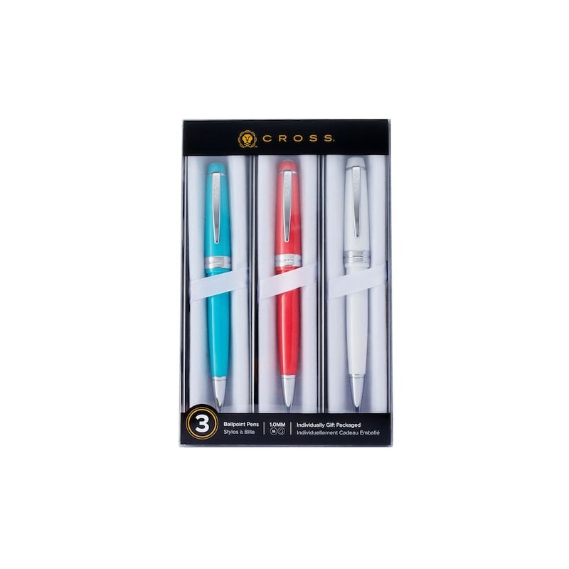 Un trío fresco de colores alegres, listo para regalar. Nuestro Set de Regalo Cross Bailey Light es un kit optimista para el hogar o el trabajo, que brinda a los escritores diarios la opción de tareas de escritura de códigos de colores o simplemente cambiar los bolígrafos a su gusto. El set incluye tres bolígrafos populares Bailey Light en colores energizantes, elaborados en resina cómodamente ligera para una sensación menos pesada en la mano. Los acabados Coral, Teal y White tienen una actitud divertida y tropical que es difícil de resistir.