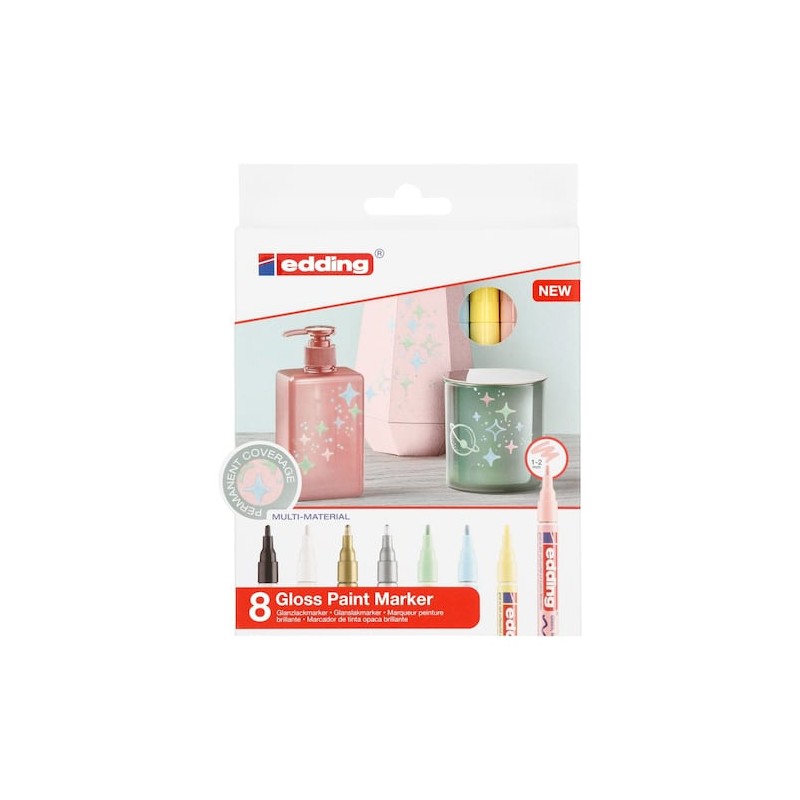 Marcadores colores pastel, punta de fieltro altamente resistente con un trazo de 1-2mm, presentación en caja con 8 rotuladores, ideales para rotular, diseñar y decorar embaces de metal, plástico, vidrio, cerámica, porcelana, etc., tinta especial de aceite resistente al agua con efecto laqueado, resistentes al calor hasta 400 grados centígrados, cuentan con sistema de válvula que regula el flujo de la tinta hasta la punta.