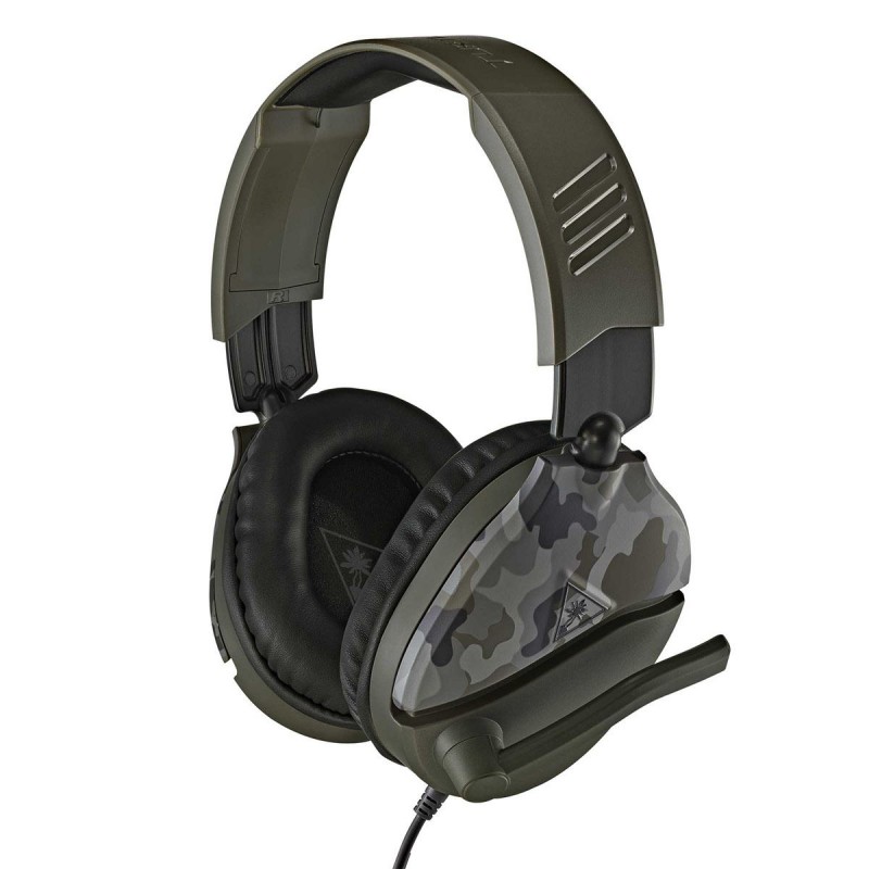Los auriculares para gaming Turtle Beach® Recon 70 Camo - Verde tienen un diseño ligero y cómodo, altavoces de 40 mm de gran calidad para no perderte ni un sonido y un micrófono abatible de alta sensibilidad que capta tu voz alta y clara en juegos con función de chat.