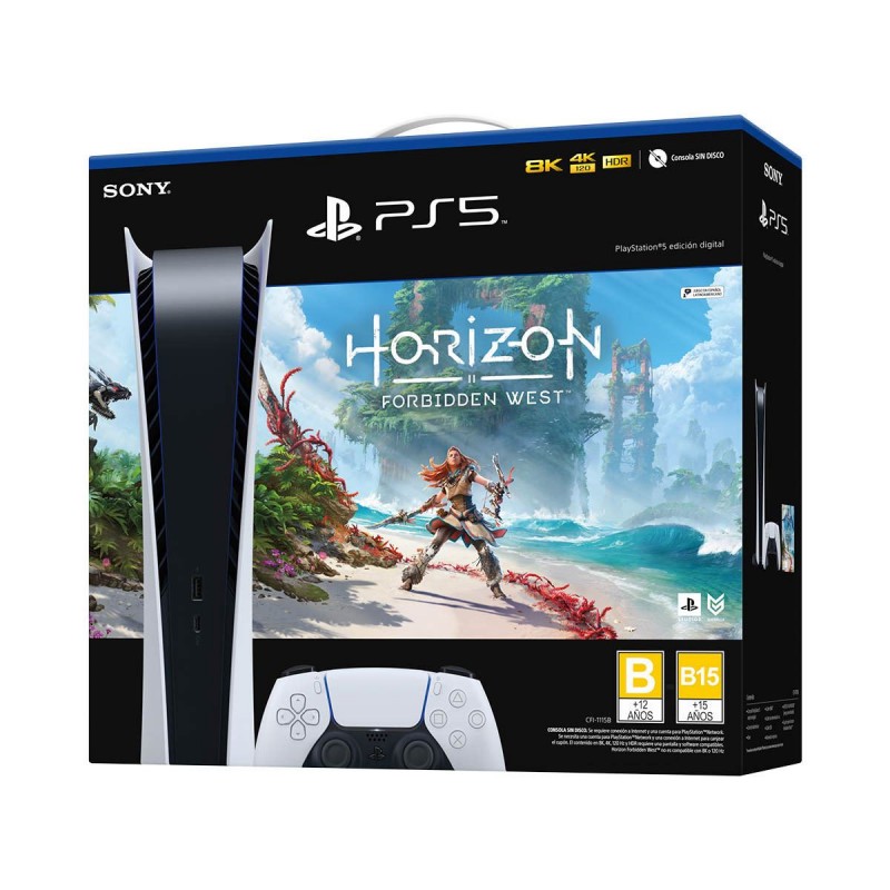 Obtén el Pack PlayStation5 Edición Digital Horizon Forbidden West y únete a Aloy mientras se enfrenta a una nueva y peligrosa frontera en PS5. Disfruta las características innovadoras de Horizon Forbidden West para PS5 que incluye impresionante resolución 4K y HDR*, los gatillos adaptativos y la retroalimentación háptica del Control Inalámbrico DualSense, Tecnología de sonido 3D Tempest en auriculares compatibles y mucho más. Se necesita un televisor o una pantalla compatibles con 4K para jugar en dicha resolución.