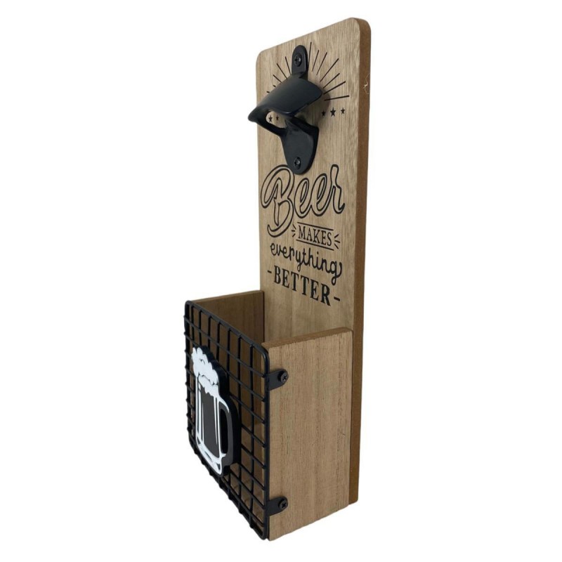 ¡Optimiza tu experiencia en el bar con nuestro porta platillo con abridor! Mantén tus platillos organizados y atractivamente presentados, y disfruta de la comodidad de tener un abridor de botellas integrado. Ya sea para uso personal o como regalo para los amantes del entretenimiento, este accesorio será una adición práctica y estilizada a tu bar. ¡Elige calidad y distinción con nuestro porta platillo de MDF y metal!