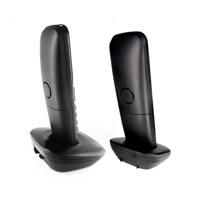 Teléfono inalámbrico de tecnología digital con identificador de llamadas,función de intercomunicador, pantalla y teclado iluminados, agenda para 20 contactos, alarma de recordatorios, pantalla personalizable, eco mode de bajo consumo eléctrico.