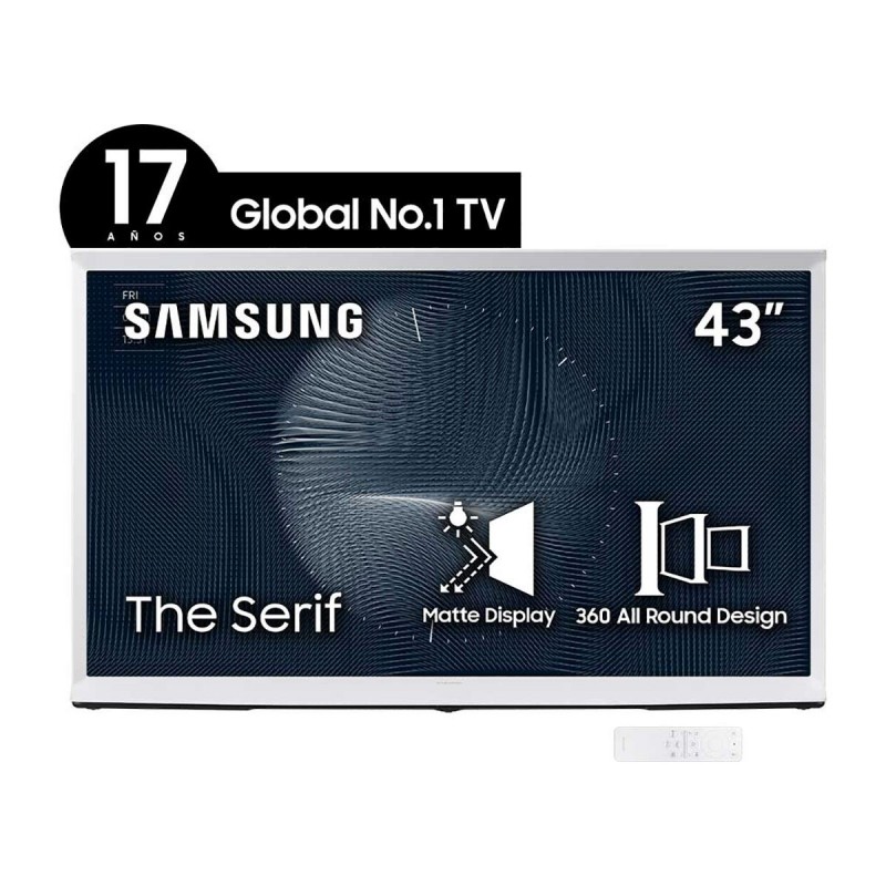 TV SAMSUNG SERIF Inspiración única para tu espacio.No tienes que preguntarte qué lugar de tu casa va a ocupar, dondequiera que la coloques, se adaptará perfectamente al entorno, liberando tu espacio. Pensando en tu entretenimiento, tiene integrado NFC y Airplay 2 disfrutarás tus canciones, películas y videos favoritos con un poderoso y enriquecedor sonido además, en calidad 4K con colores inigualables, gracias a AI Upscaling y a la tecnología Quantum Dot.