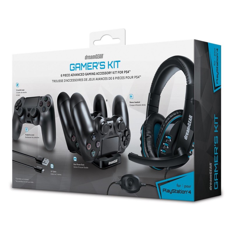 Kit de Accesorios de juego avanzado de 6 piezas para Ps4TM. El Kit del Videojuego Ps4 es la adición perfecta a cualquier Ps4 . Su Docking de carga dual, carga y sincronización con su cable de 3 Mts., cuenta con un auricular con micrófono de cristal boom con audio claro, además cuenta con un protector suave de silicón y material antiadherente para su joystick.