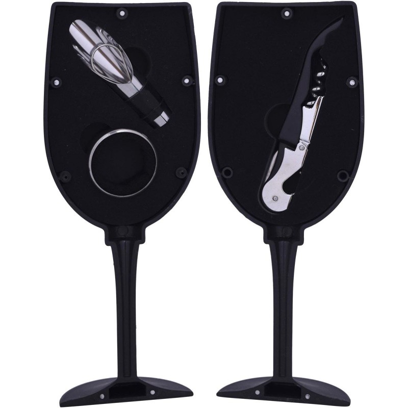 Juegos de accesorios para Vino con material 55%ACEROINOX. 40%ABS 5%SILICONA, le permiten disfrutar con los amigos de una copa de vino en el salón, un cóctel en la terraza o un cóctel antes de comer. Y gracias al acero inoxidable, es fácil limpiar y mantener los objetos como nuevos. Tamaño 9 X 9 X 23.5 CM Incluye 4 piezas. Marca Concepts Life.