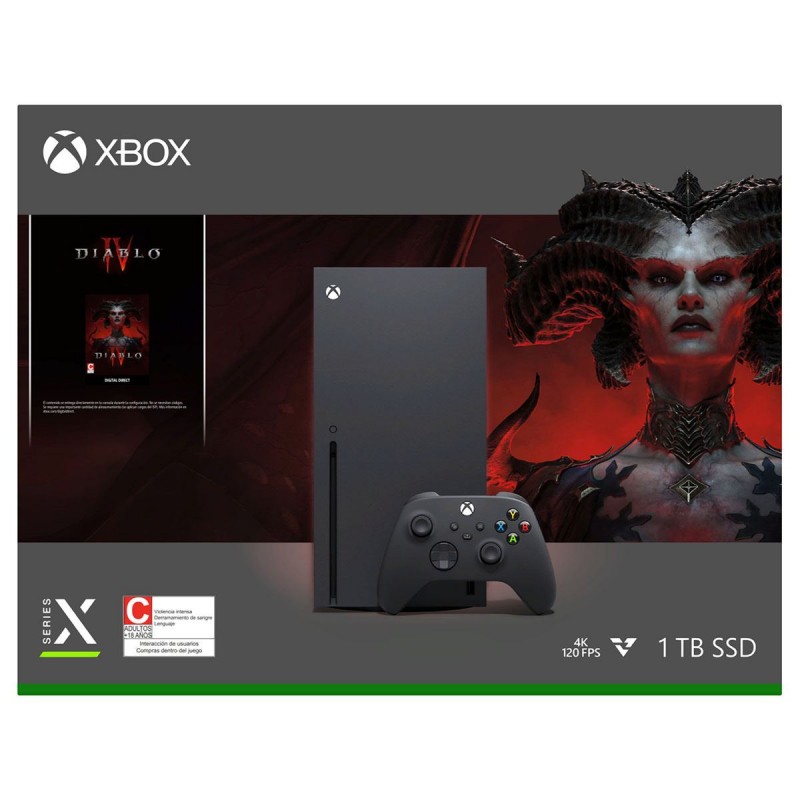 Únete a la interminable batalla entre los Altos Cielos y los Infiernos Abrasadores con Xbox Series X Paquete Diablo® IV. Ábrete camino por tierras de corrupción con 12 teraflops de potencia bruta de procesamiento gráfico. Vence a demonios casi indestructibles en combates inmersivos y llenos de acción impulsados por un SSD personalizado de 1 TB. Únete a otros aventureros, recupera ciudades invadidas y adéntrate en mazmorras de pesadilla en una resolución 4K hiperrealista.